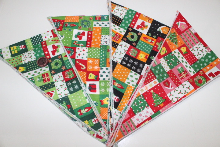 画像の通りのクリスマス柄4色を1袋にまとめた国内ハンドメイド商品です。