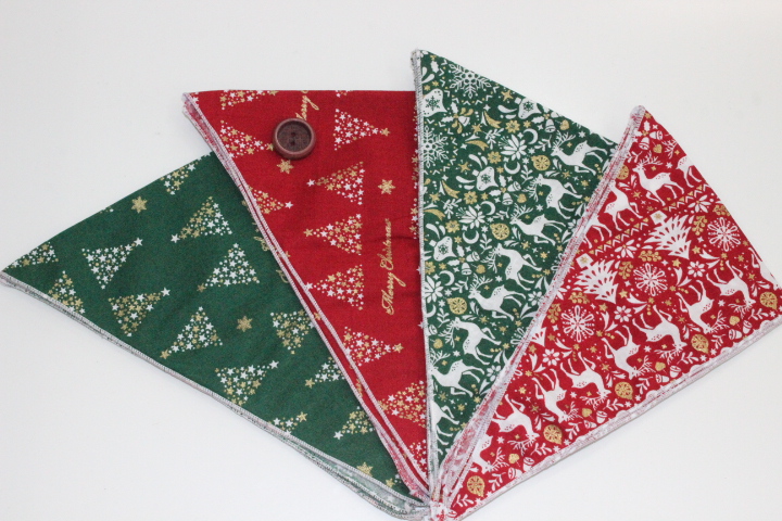 画像の通りのクリスマス柄各2色を1袋にまとめた国内ハンドメイド商品です。